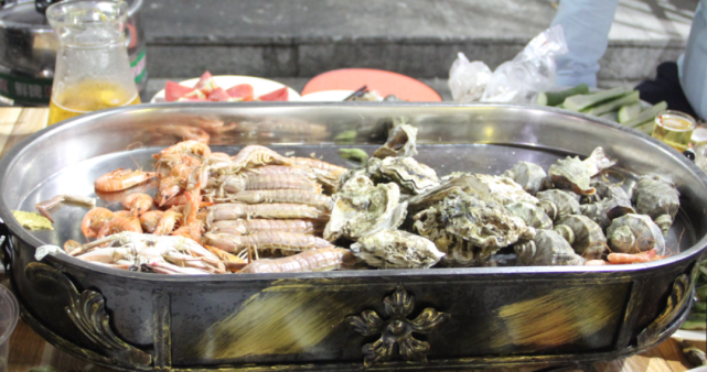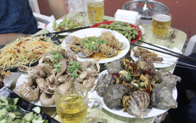 在另一桌就餐的王先生接过话说,他们来自济南,看到这里的海鲜加工明码标价,吃得特别放心。