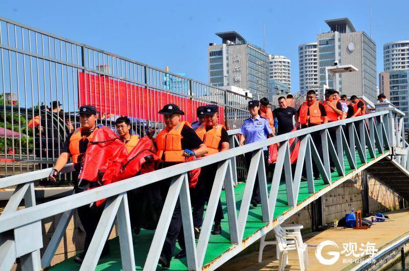 九月的奥帆中心天空湛蓝、帆船点点,比赛场地内悬挂的“全市公安机关警保部门实战大练兵暨防汛应急保障演练”的横幅显著醒目。“警力集结!”现场指挥员下达指令后,参加活动的比武演练方队、教官方队、综合保障方队及观摩方队近80名警力迅速进入指定位置集结,民警们精神抖擞,各类防汛应急装备整齐划一,厉兵秣马、严阵以待。随着现场总指挥警务保障部副主任刘巍一声令下,演练比武正式开始。