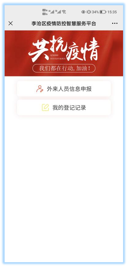 方式二:安装“青e办”小程序,在首页的“更多”中在顶部右滑,找到“李沧区特色服务”,进入第一项“李沧区疫情防控服务平台”页面,点击“外来人员信息申报”,由本人或他人如实填写个人信息即可完成申报。