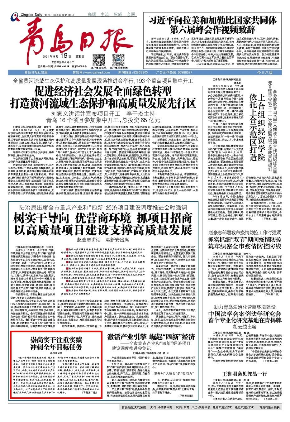 青岛日报2021年9月19日1版