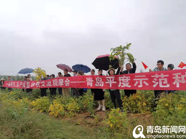 青岛新闻网9月23日讯(记者 任俊峰 通讯员 张敏 张韬)金秋九月,田园飘香。平度市旧店镇张家沙沟田间大豆,在阳光的照耀下满目金黄。9月19日,“国保一号”高产高蛋白非转基因大豆全国示范现场观摩与研讨交流活动在平度市旧店镇举行,旧店镇主管农业副镇长王成明、云山镇主管农业副镇长戴汝辉出席活动,来自江苏的农技师冒加文、一指科技团队创始人居湛青及江苏、安徽、江西、辽宁、山东等省市代表共50余人参加。