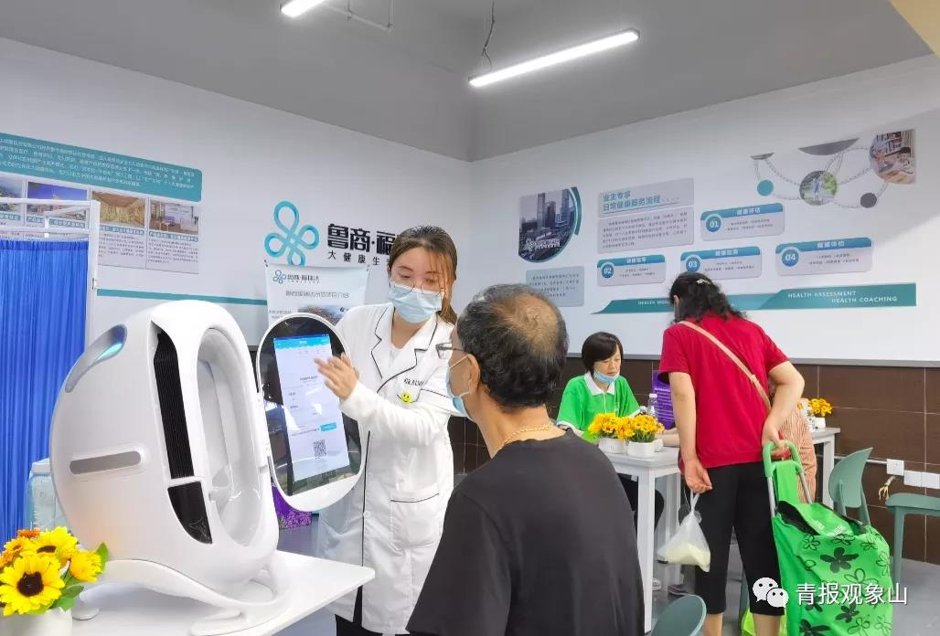 在鲁商市集内部,党建活动室、社区健康服务中心、社区工坊、共享餐厅等社区便民空间一应俱全。其中,在鲁商福瑞达社区健康服务中心里,不少市民正排队测量血压,体验中医理疗设备;“社区工坊”的墙面上,挂满了便民维修各类工具,市民可租借使用;“商户之家”免费向社会开放,部分市民和商户正在此休息、用餐、拉家常……