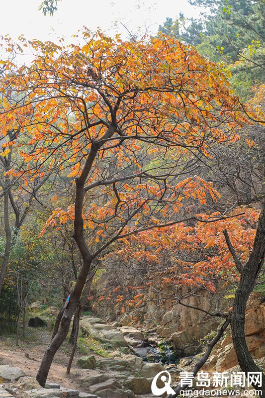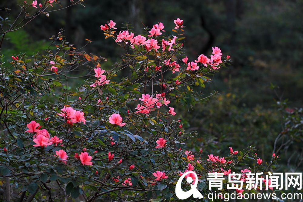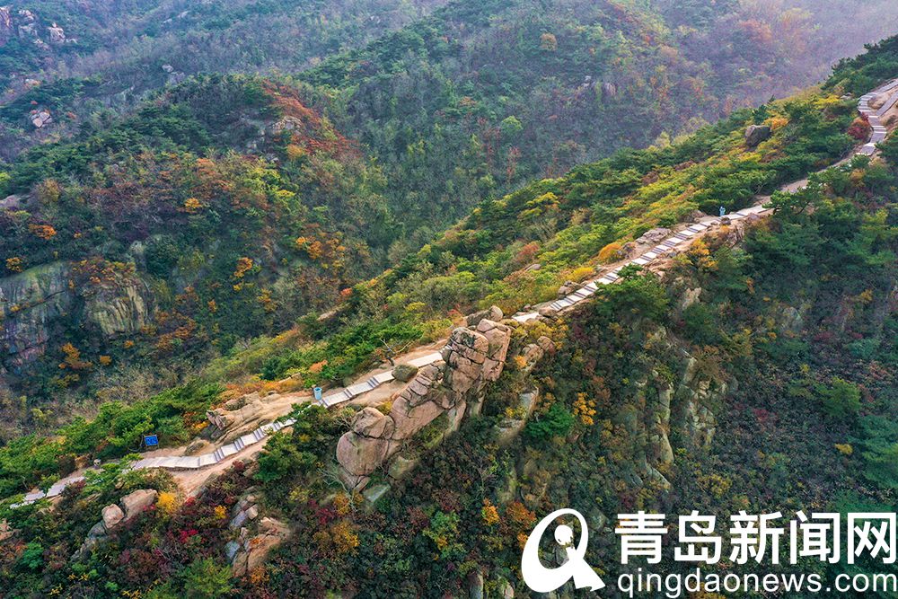 青岛新闻网11月1日讯(记者 庞为 摄影 魏世洲)时下的青岛大珠山景区,各种树叶都改变了颜色,枫叶红似火,银杏叶金黄……还有映山红的花朵在秋日里绚丽绽放。放眼望去,山谷间五颜六色,大自然的色彩之美令人陶醉。