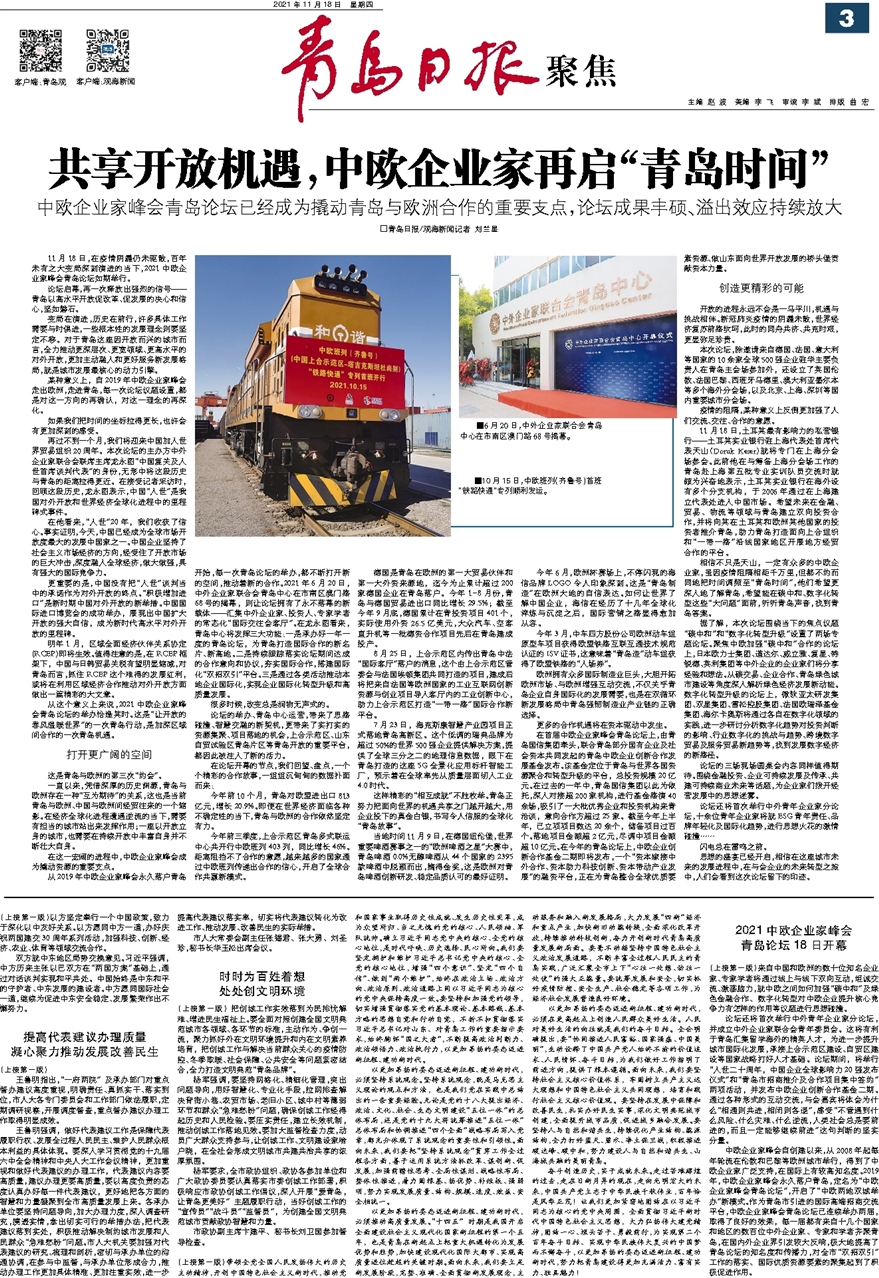 中欧企业家峰会青岛论坛已经成为撬动青岛与欧洲合作的重要支点,论坛成果丰硕、溢出效应持续放大
