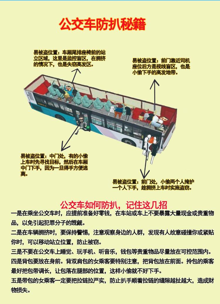 进入腊月门,乘公交外出置办年货、走亲访友的市民逐渐增多,不少扒手也有了可乘之机。1月7日,城运控股交运温馨巴士根据公交车上扒手最爱关注的位置和最常使用的手法,总结了一份反扒秘籍,为市民乘公交车防盗支招。