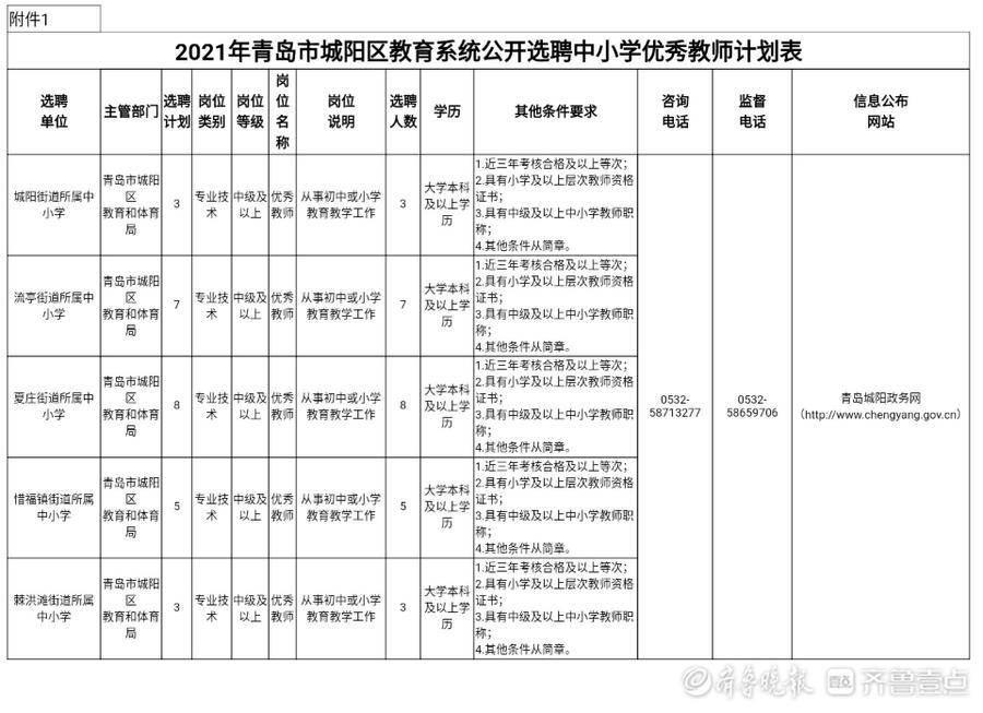 日前,城阳区教体局发布公开选聘中小学优秀教师公告,面向全国招聘29名优秀中小学教师。网上报名时间截止到1月11日16:00。