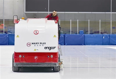 记者见到崔宁时,他正开着扫冰车在冰场上“打转”。不管此前场上运动员的冰刀将冰面破坏成什么样,只要扫冰车一上场,就会将场地整理得光滑如新。