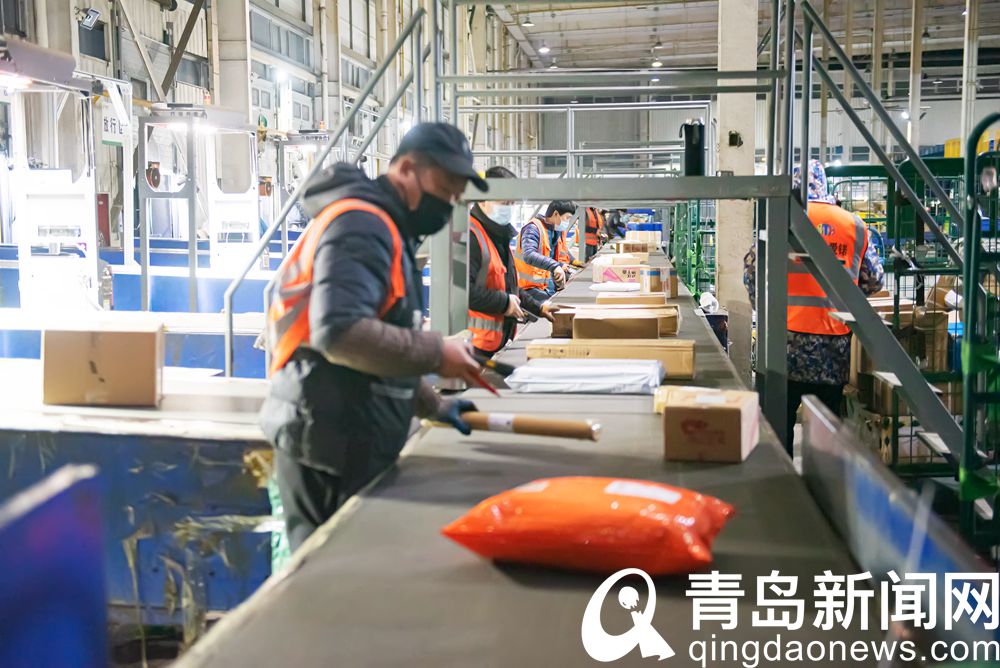 青岛新闻网1月28日讯(记者 庞为 摄影 高瑞征)春节到来之前的邮包,有的是年货,有的承载着人们浓浓的亲情友情。随着春节越来越近,全年无休的邮政快递包裹服务迎来“春运”高峰。图为27日,青岛邮政员工正在加班加点进行分拣作业,以保证邮件安全及时送达用户手中。