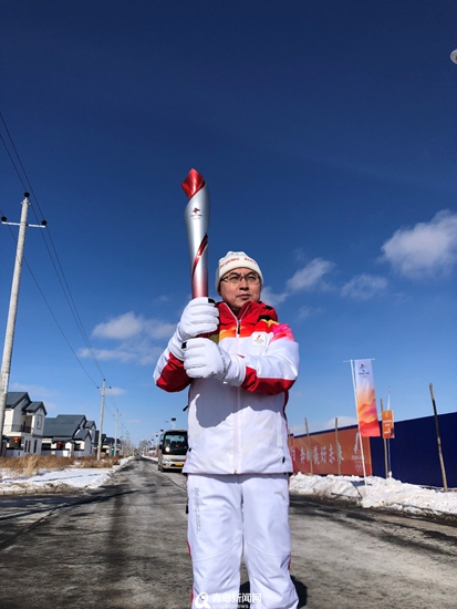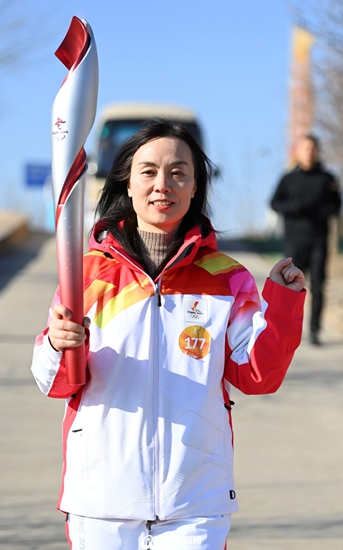 王彩红,2月4日在北京大运河森林公园传递火炬