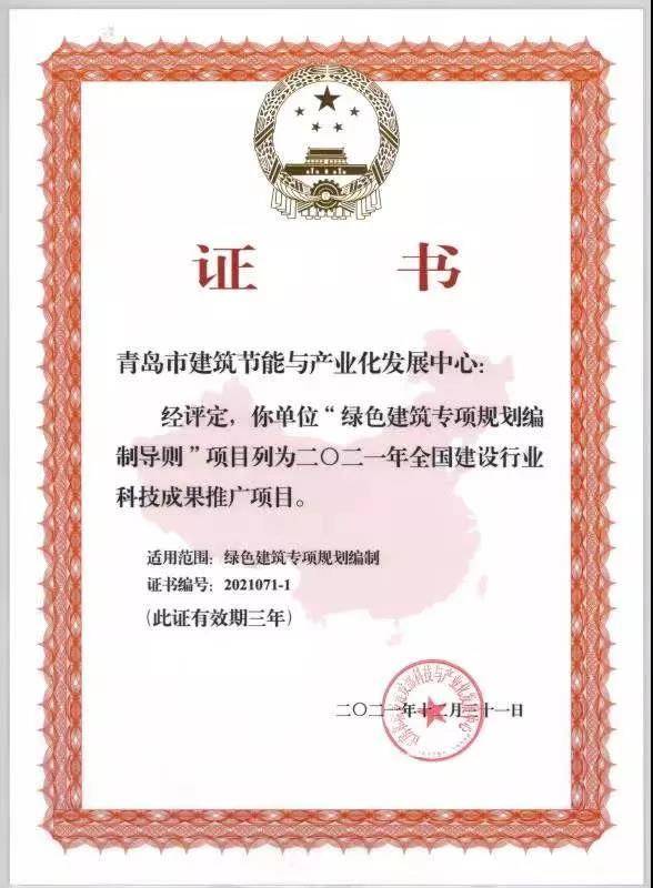 据悉,“全国建设行业科技成果推广项目”的设立旨在促进建设行业技术进步,加快科技成果推广转化,推动产业技术升级,支撑住房和城乡建设高质量发展。青岛市建筑节能与产业化发展中心与有关单位在绿色建筑专项规划编制过程中,科学统筹,合理布局,建立了单元化、刚性与弹性相结合的规划管控体系,结合“多规合一”趋势,构建了“绿色建筑规划一张图”的管理框架,探索形成了绿色建筑规划编制的有效方法,通过统一规划、统一管理、统一落实来保障绿色建筑总体目标的实现,为各地区编制绿色建筑专项规划提供有力参考。此前,山东省住建厅将《青岛市绿色建筑与超低能耗建筑发展专项规划(2021-2025)》作为典型范本,转发给其他省内城市住建部门借鉴学习,并列入2021年度山东省建设科技创新成果。(青岛日报/观海新闻记者 王冰洁)