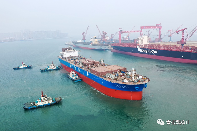 全球首艘10万吨级智慧渔业大型养殖工船日前在青岛出坞。
