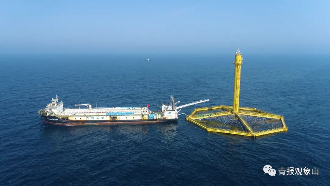 青岛深远海养殖示范区2021年首次完成规模化收鱼。