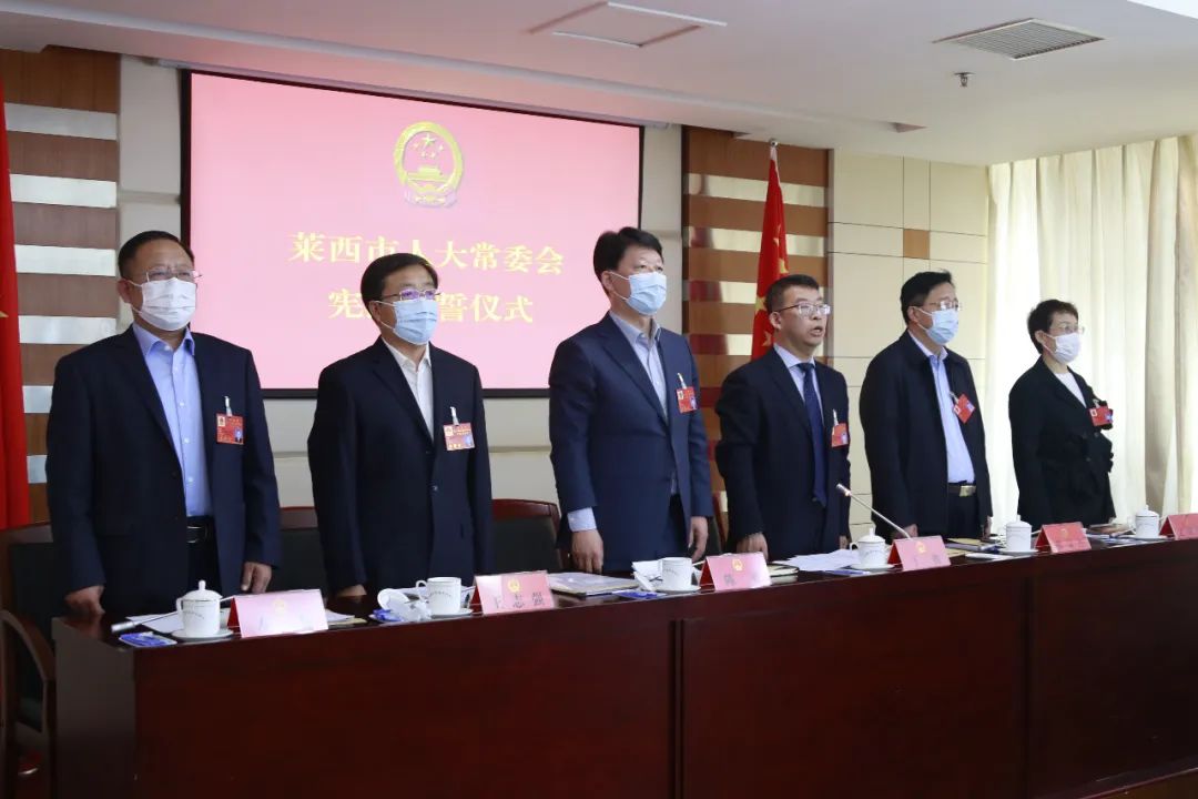 根据疫情防控要求,莱西市人大常委会第二次会议后另行举行了宪法宣誓仪式。莱西市人大常委会主任、副主任,莱西市政府、莱西市监察委员会、莱西市法院、莱西市检察院负责人,莱西市人大常委会办公室、人工委负责人,莱西市人大各专门委员会委员,莱西市人大常委会第二次会议任命的市政府组成部门主要负责人、莱西市监察委员会委员参加宪法宣誓仪式。莱西市人大常委会副主任于胜主持宪法宣誓仪式。
