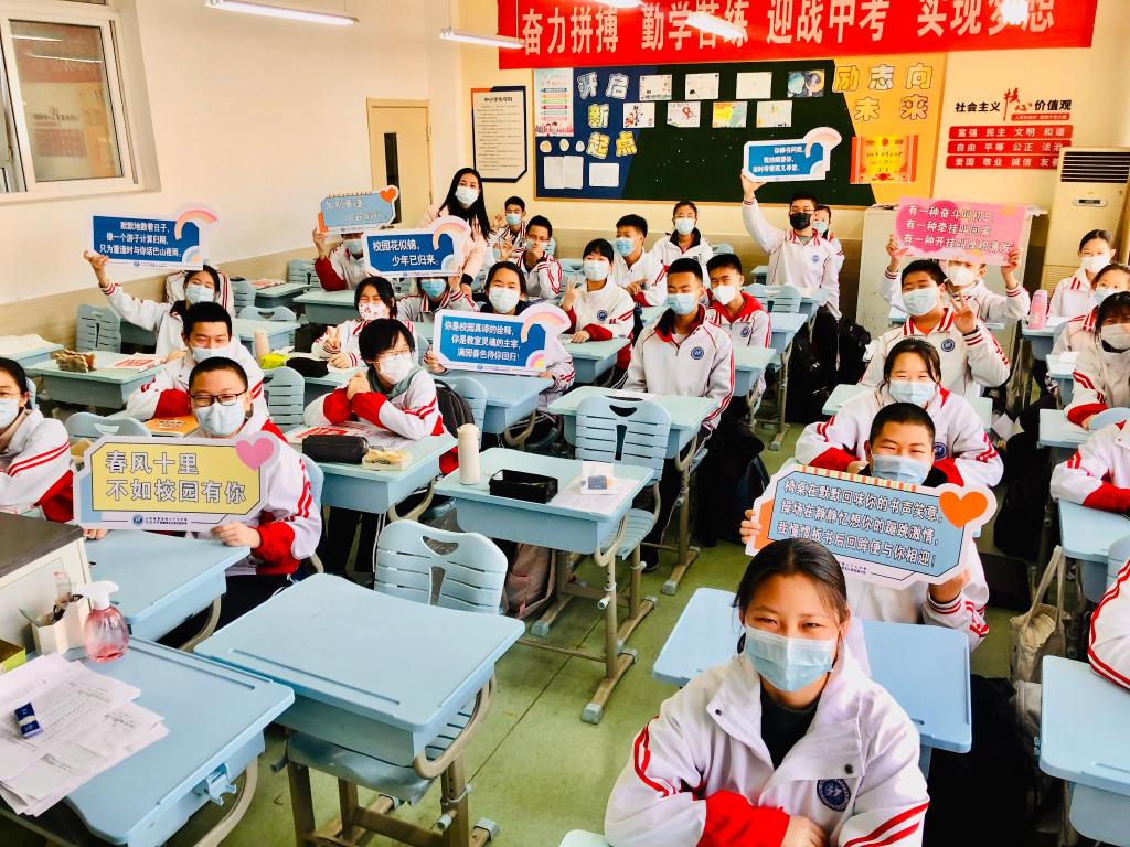 4月7日,青岛三十七中为学生精心制作了欢迎牌。