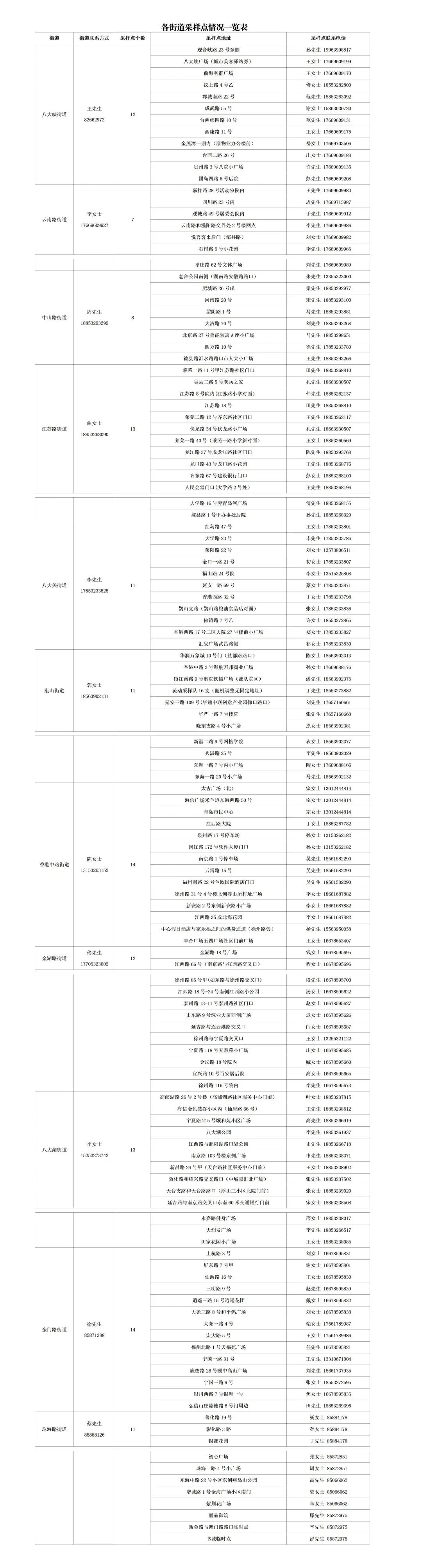 由各街道办事处统一安排采样点,具体信息详见采样点情况一览表(附后),或是扫描“市南区核酸检测采样点地图小程序”(附后),对核酸检测采样点进行查询。