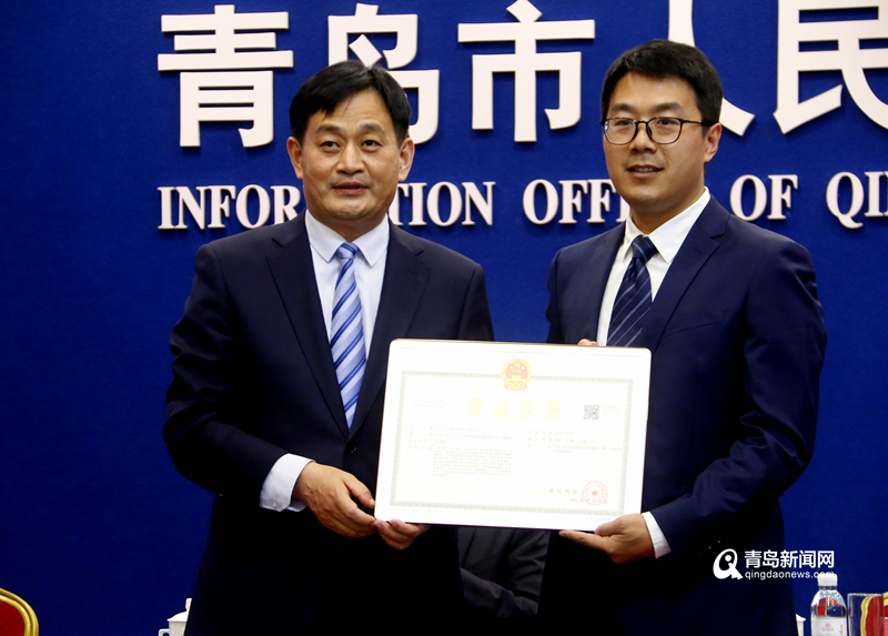 在会议现场,青岛市副市长赵胜村为青岛市第 200万家市场主体——青岛雷神数智科技有限公司颁发营业执照。