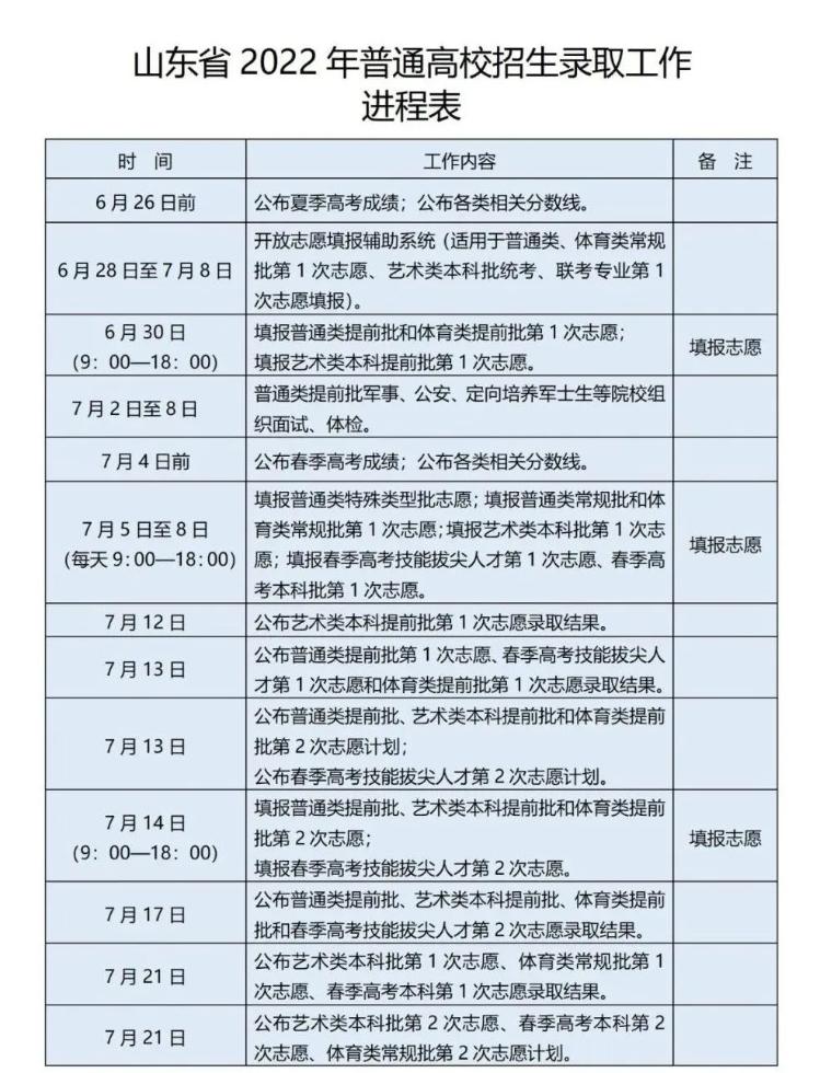 因夏季高考填报志愿数量较多,为方便广大考生,省招考院为夏季高考各平行志愿批次提供了志愿填报辅助系统招生计划查询和预选志愿功能。志愿填报辅助系统分批次开放,6月28日—7月8日首次开放,适用于普通类、体育类常规批第1次志愿、艺术类本科批统考、联考专业第1次志愿填报。考生可在正式志愿填报前,在志愿填报辅助系统生成并保存志愿预填表,志愿填报期间通过“一键导入”方式将志愿预填表信息导入志愿填报系统。志愿正式填报期间,志愿辅助系统仅提供计划查询功能,不能进行志愿预选预填。山东省2022年普通高等学校招生考试信息平台()是考生网上填报志愿的唯一途径。