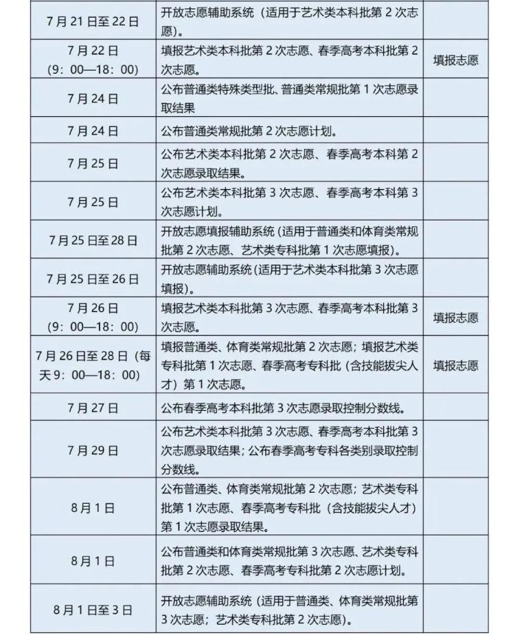 高考成绩发布后,直到8月上旬高考录取结束,省招考院将在官方网站和微信公众号发布一系列高考志愿填报信息,包括招生录取政策、各类成绩排序信息、各批次院校剩余招生计划、各批次志愿填报指导和录取结果查询的具体时间等,请广大考生和家长及时查阅。