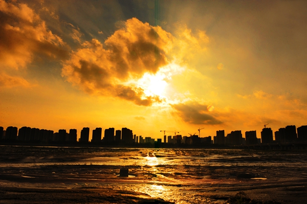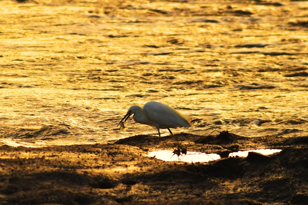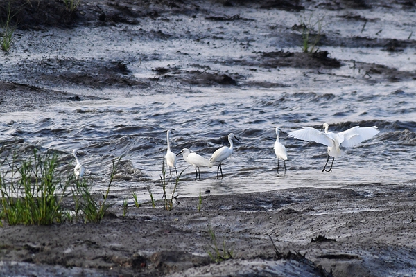 近日,在青岛市城阳区墨水河红岛段,成群的白鹭在落霞中觅食嬉戏,构成一幅美丽的自然生态画卷。