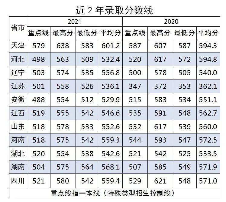 2021年录取最低位次为13000名,623分;2020年录取最低位次为15000名,603分。