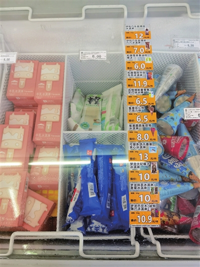 另一家连锁便利店里,雪糕和冰淇淋的款式相对较少,也在冰柜的盖板上分别贴着价格。记者发现,标价最贵的是一款12元的雪糕,但询问收银员了解到,他们店内最贵的是一款“钟薛高”雪糕,售价18元。“这款最贵的雪糕是刚到的货,价格标签还没来得及贴上。”收银员说,他们也在网上关注到了“雪糕刺客”,所以都嘱咐店员,如果看到顾客拿较贵的雪糕,在扫价码前要提醒一下顾客。