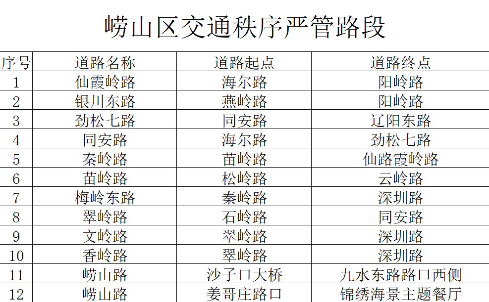青岛日报社/观海新闻7月7日讯 为加强城市道路交通秩序管理,确保道路交通安全、畅通,根据《中华人民共和国道路交通安全法》《中华人民共和国道路交通安全法实施条例》《山东省实施<中华人民共和国道路交通安全法>办法》等法律法规,自2022年7月15日起,崂山区32条道路确定为机动车违法停车行为严格管理路段(简称“严管路段”)。