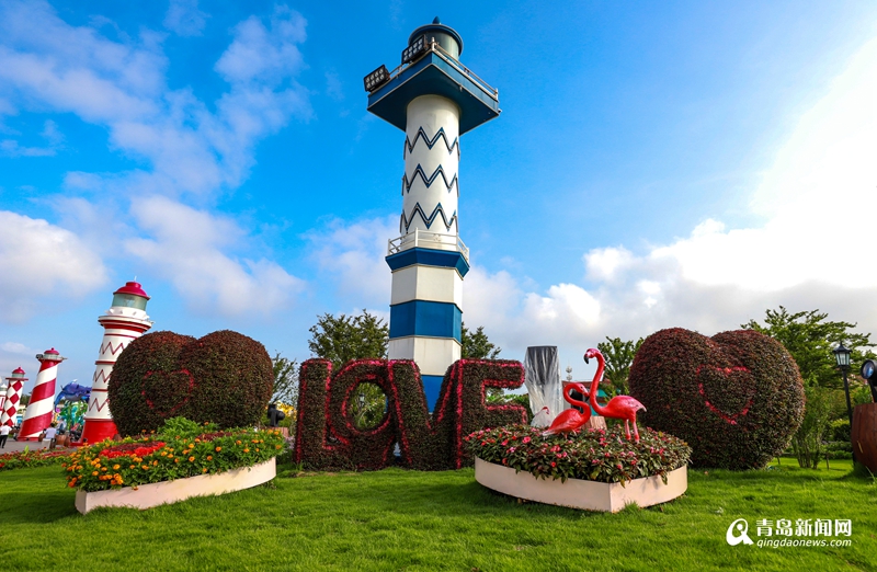 位于星光大道西侧,以简约、浪漫为主题,蓝色灯塔为背景,同色系时令花卉为基底,搭配爱心、LOVE等花雕造型,吸引年轻情侣为爱情打卡。