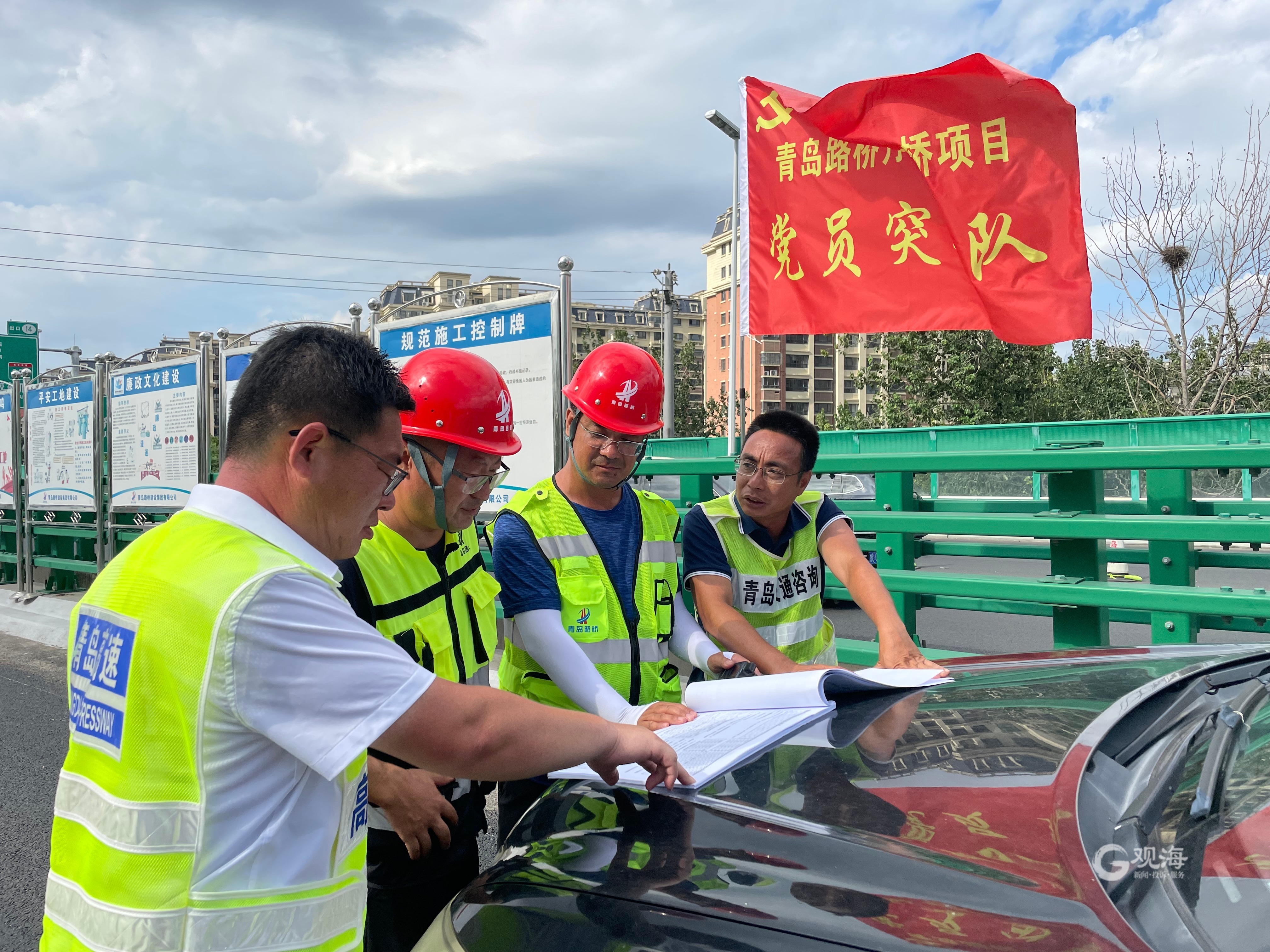 青岛交通发展集团把主线抢通作为主要目标,业主、监理单位、施工单位、设计及检测单位将“办公桌”搬到施工一线,围绕工艺改进、雨期影响等多个“难点、堵点”,现场攻坚,集中突破,将工期优化到极致。