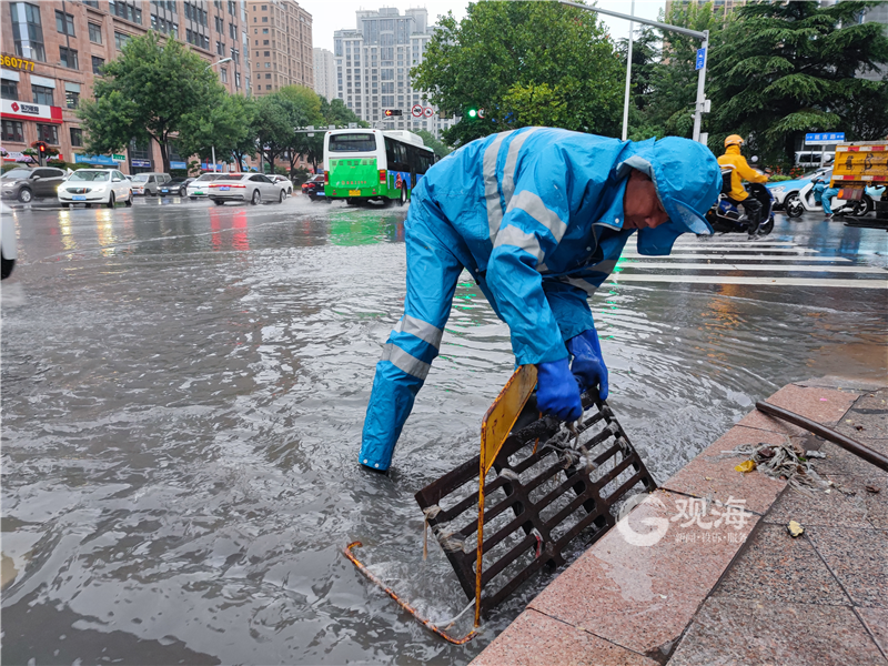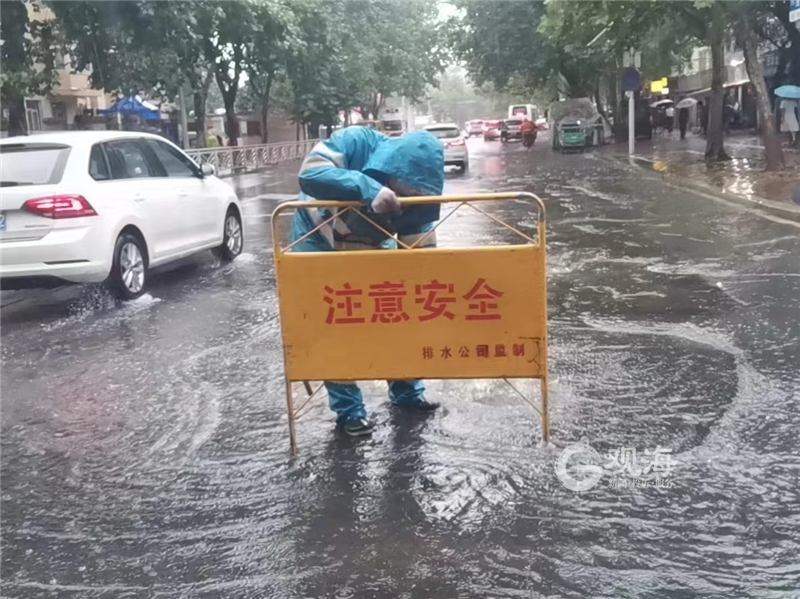 青岛日报社/观海新闻8月12日讯 8月12日清晨,一场强降雨突袭岛城,青岛水务排水公司迅速组织全员上路,排水工作人员克服连续奋战的疲劳,继续开展新一轮防汛抢险工作。对香港路、福州路、山东路等重要路段开展道路巡视,并对孟庄路铁路桥洞、青海路普集路口等易积水部位安排专人进行值守,提前打开雨水篦子加速排水并放置安全警示护栏,全力保障早高峰出行。