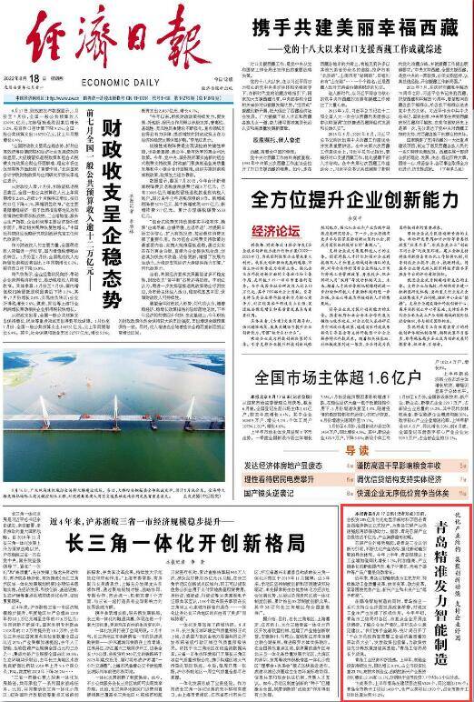 今天出版的经济日报在头版以《青岛精准发力智能制造》为题刊文,点赞青岛在优化产业结构、集聚创新动能、支持企业纾困方面采取的一系列政策举措和获得的发展成效。