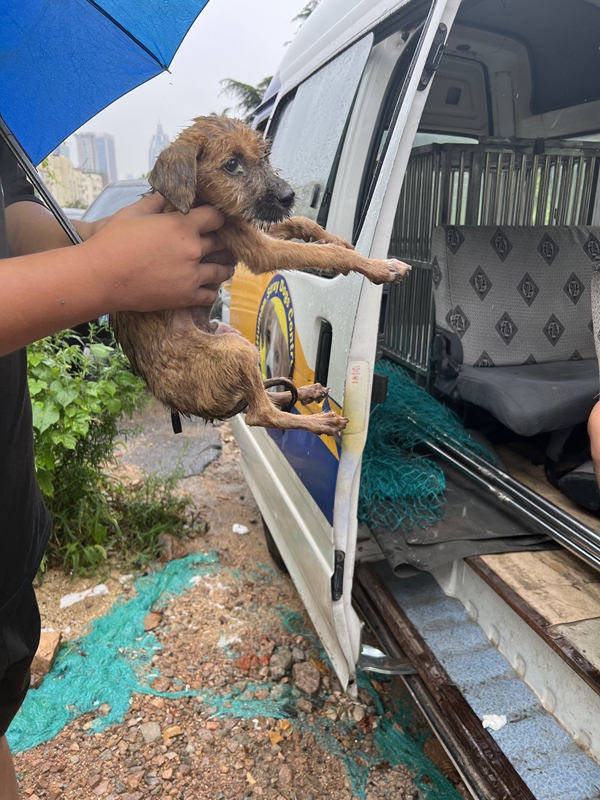 执法人员了解情况后,立即联系流浪犬捕捉队伍、青岛爱护动物协会去现场查看。执法人员发现,流浪犬应该是刚出生不久,用于排水的水渠很高,流浪犬很难攀爬上来,在雨水中瑟瑟发抖。执法人员立即研究解救方案,怕流浪犬受到惊吓沿水渠逃窜,经过多人拦截,终于将困在金岭山南水渠里的流浪犬解救出来,并送到收容单位。解救行动的同时,得到周遭过往的居民的点赞,解决了周边居民的困扰问题。