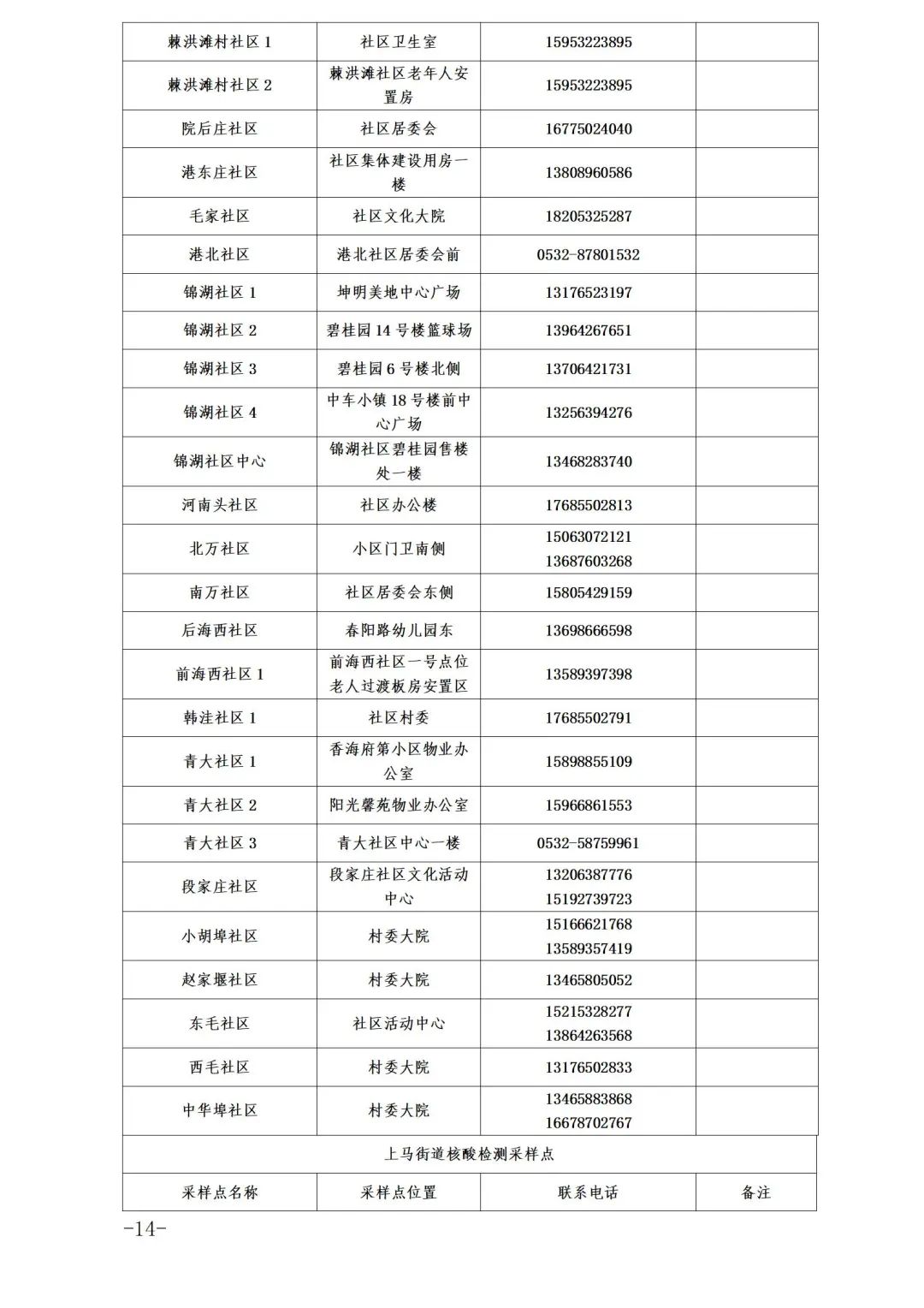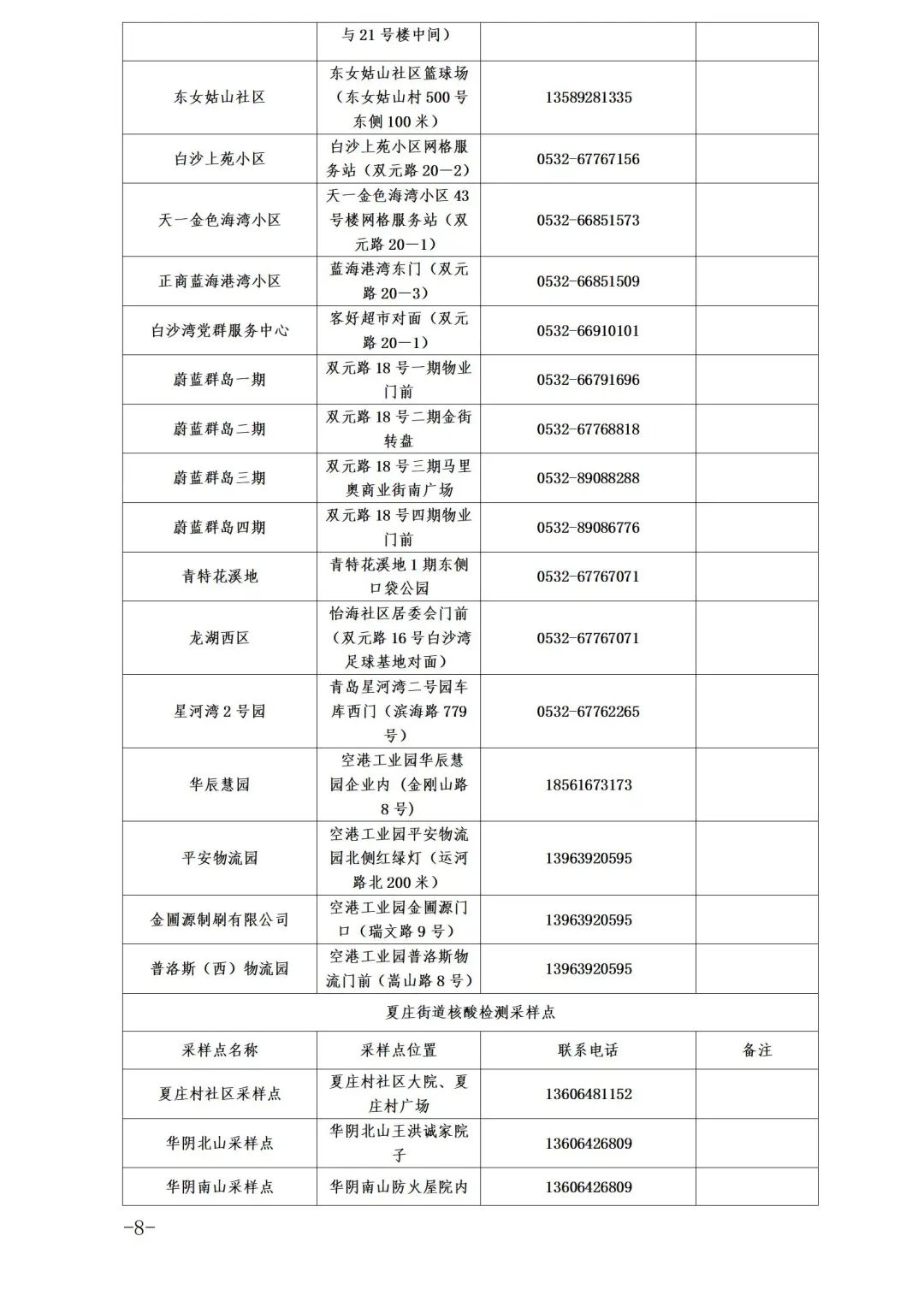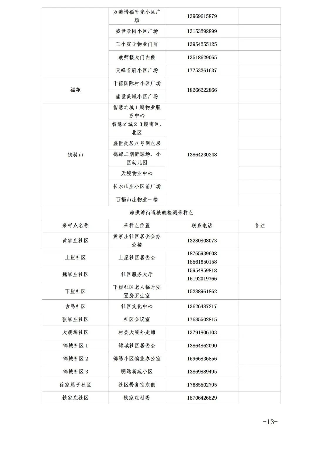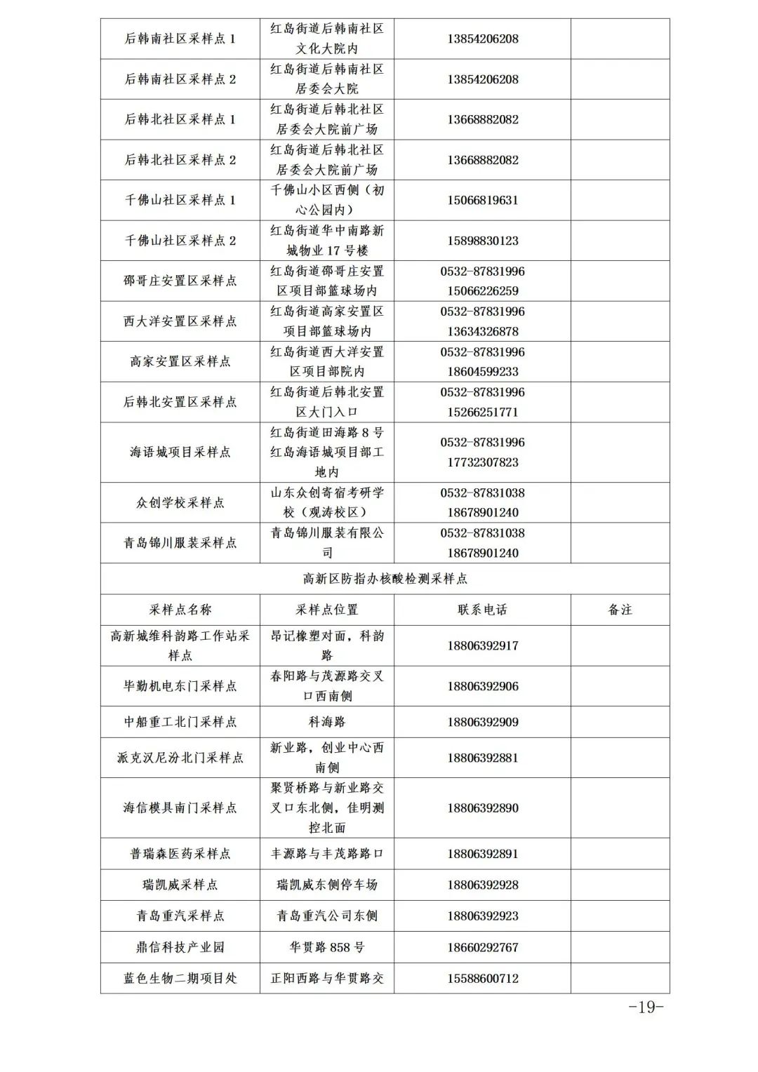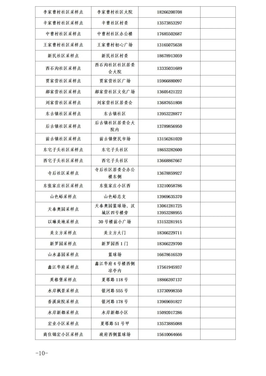 各街道、高新区防指办、高新便民服务中心就近设置采样点(采样点信息附后),请关注区及各街道、高新区防指办、高新便民服务中心发布的信息。