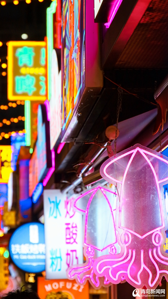 作为青岛市北区的“顶流”商圈,台东步行街的升级改造一直都备受期待。经过改造,台东商圈内的美食街还有了全新的名字——恣儿街。人潮汹涌的恣儿街上,七彩霓虹灯点亮台东步行街的夜晚,增添了浓浓的摩登都市感。好吃又好玩的店面商铺,带来了热干面、潮汕牛肉丸、麻辣串等全国各地小吃。