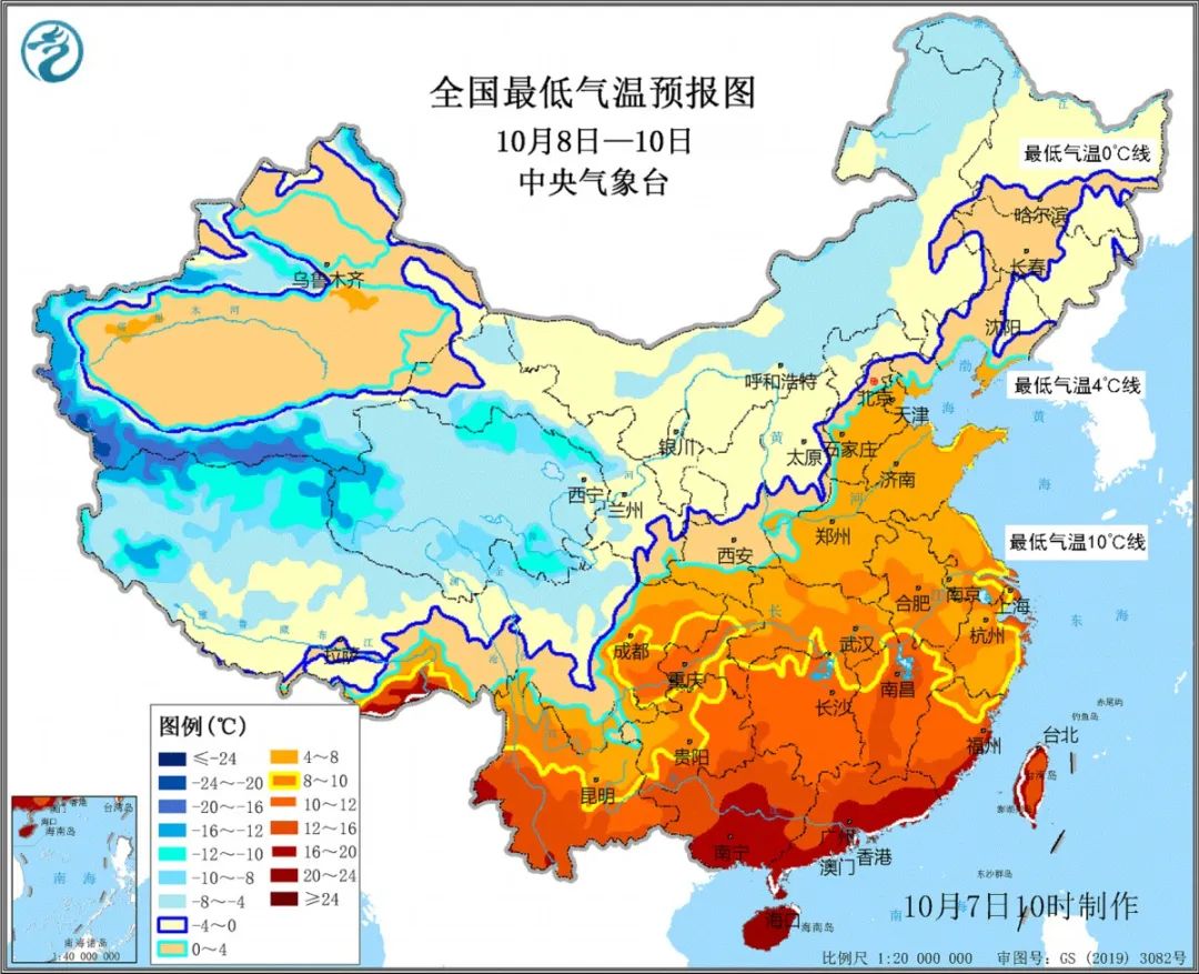中央气象台预计,8日至10日,中东部大部地区气温将普遍下降4~8℃,其中甘肃中部、陕西北部、山西北部、内蒙古中部、苏皖北部等局地降温幅度可达10~12℃。最低气温0℃线位于陕西北部、山西北部、北京北部至东北地区西部一带;与上次寒潮过程相比,最低气温0℃线西段位置更偏南。