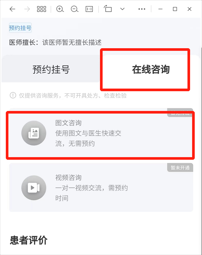 5、选择咨询医生,点击“在线咨询”—“图文咨询”。