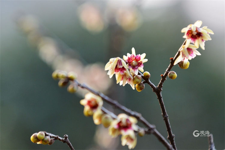 腊梅的馥郁花香,吸引着游人驻足赏花。