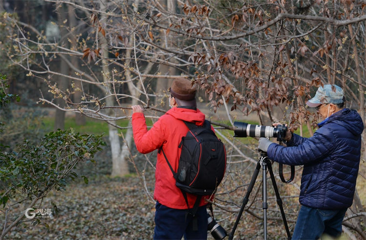 盛开的腊梅吸引着摄影爱好者拍摄。