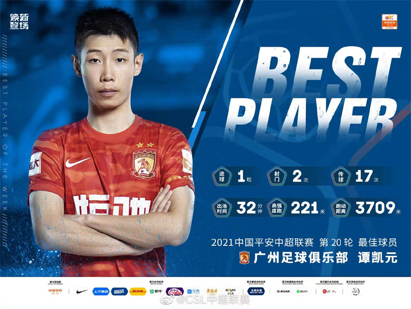 2020赛季,当时19岁的谭凯元被卡纳瓦罗提拔至一线队,在足协杯对阵四川九牛的比赛中射入职业生涯处子球,并完成中超处子秀。上赛季夏窗,谭凯元本来有望加盟塞尔维亚球队伏伊伏丁那,甚至一度出现在这支塞超球队的新赛季全家福中,但最终因为双方在青训补偿金上的分歧,谈判未能完成。
