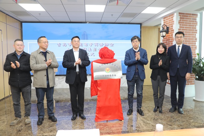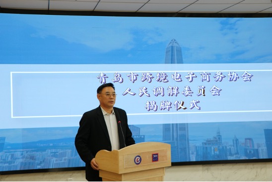 论坛的第二个环节是由青岛市民政局社会组织管理局领导,青岛市跨境电子商务协会执行会长、党支部书记史立刚,青岛市跨境电子商务协会秘书长陈寿发,青岛市商务局电子商务处处长王勇,青岛市跨境电子商务协会会长黄春玲,北京德和衡律师事务所高级合伙人宋波共同为青岛市跨境电子商务协会调解委员会揭牌。