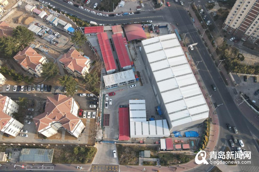 为最大程度减少噪音、扬尘对周边居民和商户的影响,分隔施工现场与城市空间,在市住建局统筹、青岛地铁集团组织下,中铁十八局集团在施工场区设置全封闭大棚,将整座车站的施工作业全部封闭在大棚内。