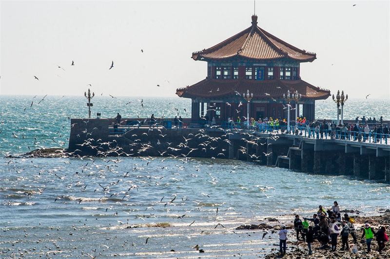 栈桥上海鸥翔集成为岛城美丽的风景。