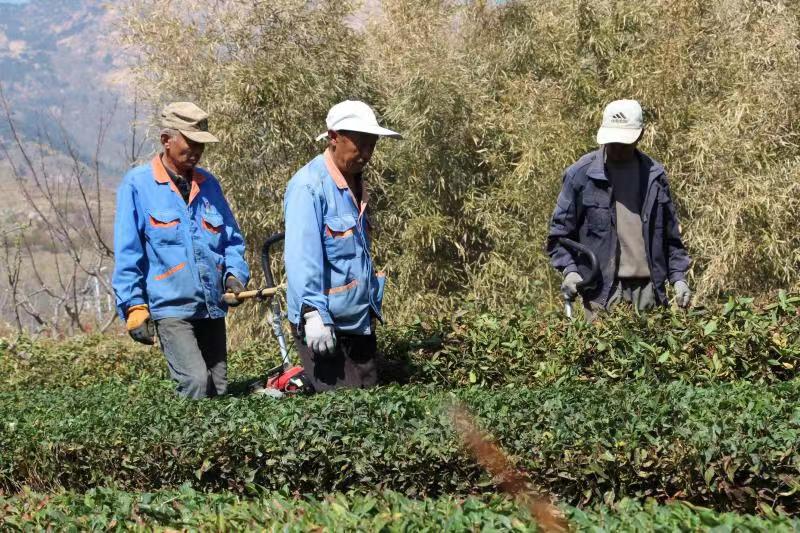 修剪、起垄、施肥……在位于囤山村的碧海蓝田生态农场,茶农们忙得热乎朝天,伴随着轰隆隆的修剪机声,130亩茶园内一派春日劳作的热闹景象。“修剪是为了让它更好的起蓬,不要剪的太重了,太重了容易伤到茶叶,不利于茶叶后期生长……”在该生态农场的一处白毫早茶地里,街道农业中心高级农艺师纪海旺为茶农们讲解春季茶树修剪的要领和注意事项,并根据不同茶树品种,围绕如何预防倒春寒、春季病虫害等方面进行一类一策讲解,指导茶农如何促进春茶提早萌发。
