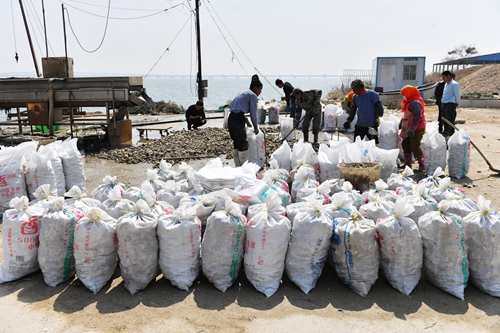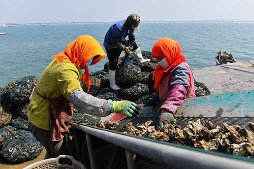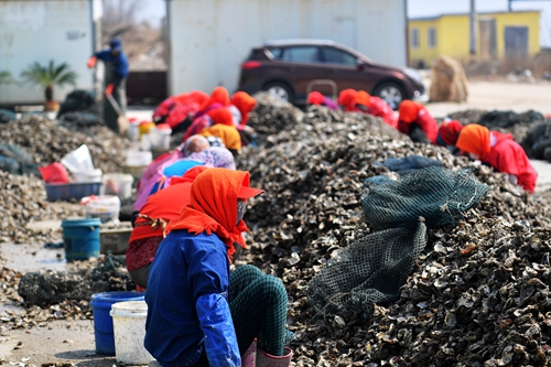 春日时节,青岛市城阳区红岛街道养殖的牡蛎正是肥美之时,渔民抢抓时间,优选牡蛎供应各地海鲜市场。