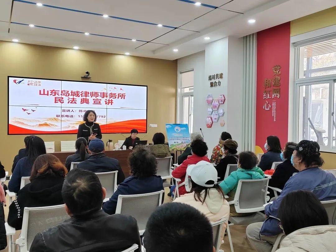 近日,金家岭街道办事处特邀山东岛城律师事务所律师陈卓,走进海青路社区,为居民做了主题为《民法典宣讲·婚姻家事》的宣讲。