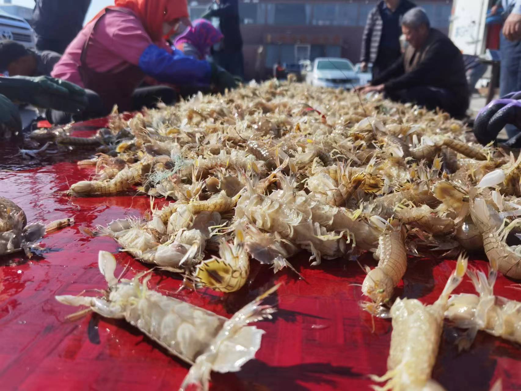 3月30日上午,记者来到仰口渔港码头时,三五艘出海捕捞的渔船陆续靠岸,现场一场关于“鲜”的时间赛跑正在上演。渔民们熟练的将刚刚打捞上岸的虾虎进行分拣,前后不到半个小时,200多斤的新鲜虾虎就被装上了冷链运输车,统一销往岛城各大酒店和市场。“现在虾虎个头都不小,正是鲜肥之时,根本不愁卖。”一渔民告诉记者,他们是从昨天晚上开始出海捕捞作业的,赶在今天早上涨潮时归港,一趟下来自己捕捞了200多斤虾虎、1000多斤小鱼。