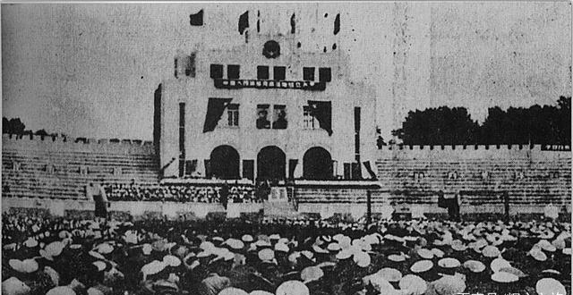 1950年10月10日海军青岛基地成立大会在汇泉广场举行