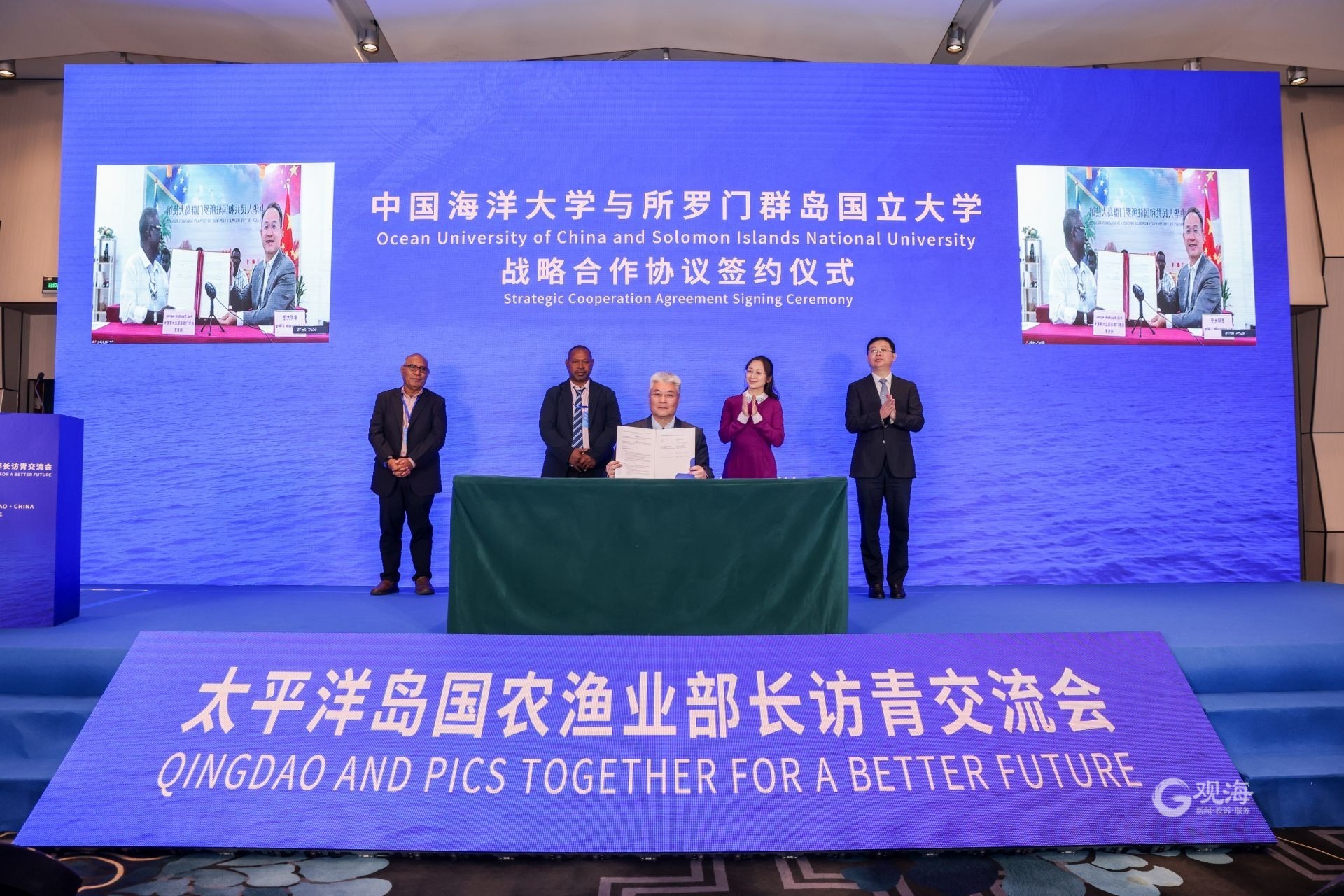 这既是一场友好交流活动,也是一次海洋学术合作活动。近年来,青岛与西太平洋岛国在海洋科技教育合作方面持续深化。目前,中国海洋大学有16名基里巴斯留学生、2名巴布亚新几内亚留学生在校学习。2019年以来,中科院海洋所与巴布亚新几内亚大学围绕海洋生物多样性、海洋合作开发等领域开展了多层次的学术交流。交流会上,签订了《所罗门群岛国立大学和中国海洋大学合作框架协议》,青岛与西太平洋岛国的学术交流合作打开了新空间。