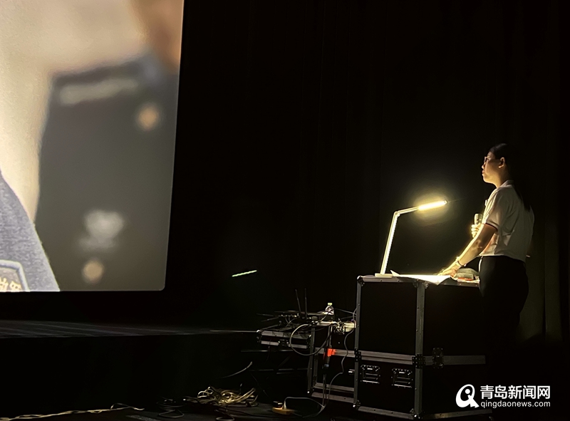 黑暗的观众席一侧,三名“解说员”在台灯下不停地翻着一沓“解说词”。电影开始前,“解说员”逐一介绍了故事背景、人物关系。随着电影情节的发展,“解说员”把没有对白的人物表情、动作、画面、情节发展,甚至人物服装的颜色款式都用语言描述出来。