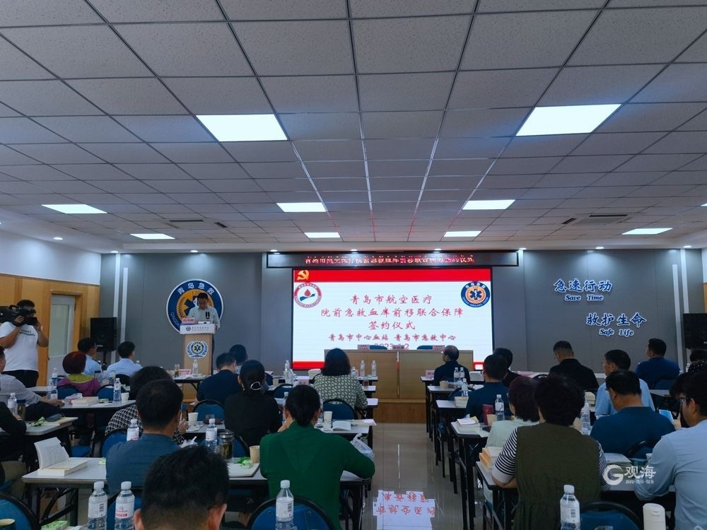 青岛日报社/观海新闻6月2日讯 为进一步提高应对突发事件的血液应急保障能力,健全送血应急处置机制,切实保障临床用血需要和安全,维护人民群众生命健康,今天下午,青岛市航空医疗院前急救血库前移联合保障签约仪式在市急救中心举行,市卫生健康委党组副书记纪总纲出席仪式并讲话,市中心血站站长逄淑涛、市急救中心主任辛善栋签署协议,标志着我市“院前急救、血库前移”联合保障应急联动机制正式建立。这是我市应急血液保障途径的有力创新,为今后可能出现的海上急救、岛屿急救等远距离及陆路无法到达的应急用血提供了切实有效的方案。