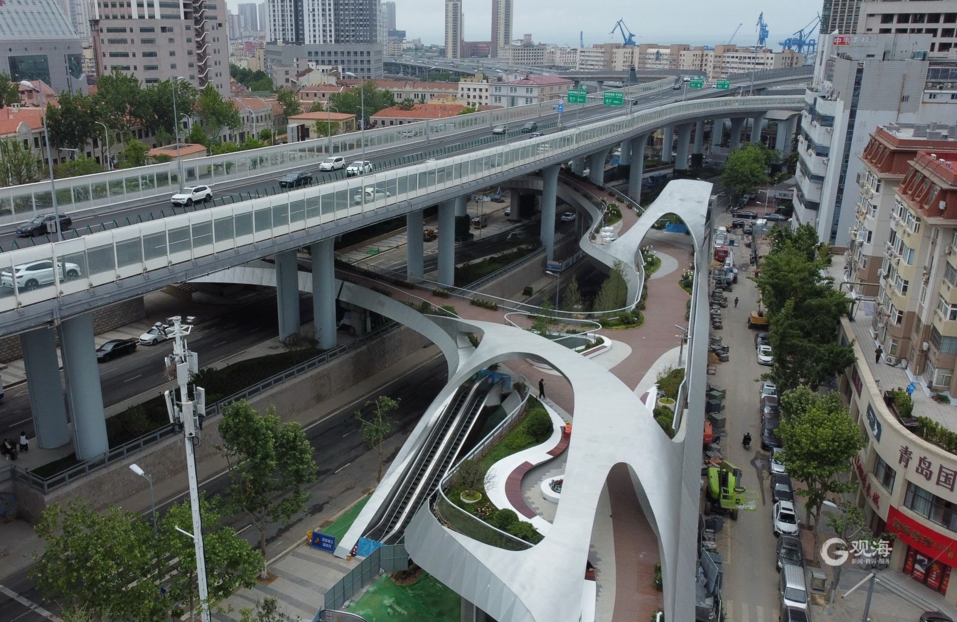 从空中俯瞰,横跨胶宁高架桥的浮岛公园向东西两侧蜿蜒,部分路段银色的钢结构隆起,宛若海浪,投射的阴影恰巧作为开放的休闲空间……位于市北区胶宁高架桥西段沧口路区域的浮岛公园,是青岛历史城区首个集交通、公园、景观为一体的综合功能性基础设施项目,自开工以来便备受市民群众关注。历时半年的紧张施工,目前,该项目已完成交通浮岛建设、桥上桥下绿化、周边环境整治、高架桥体亮化等工程。
